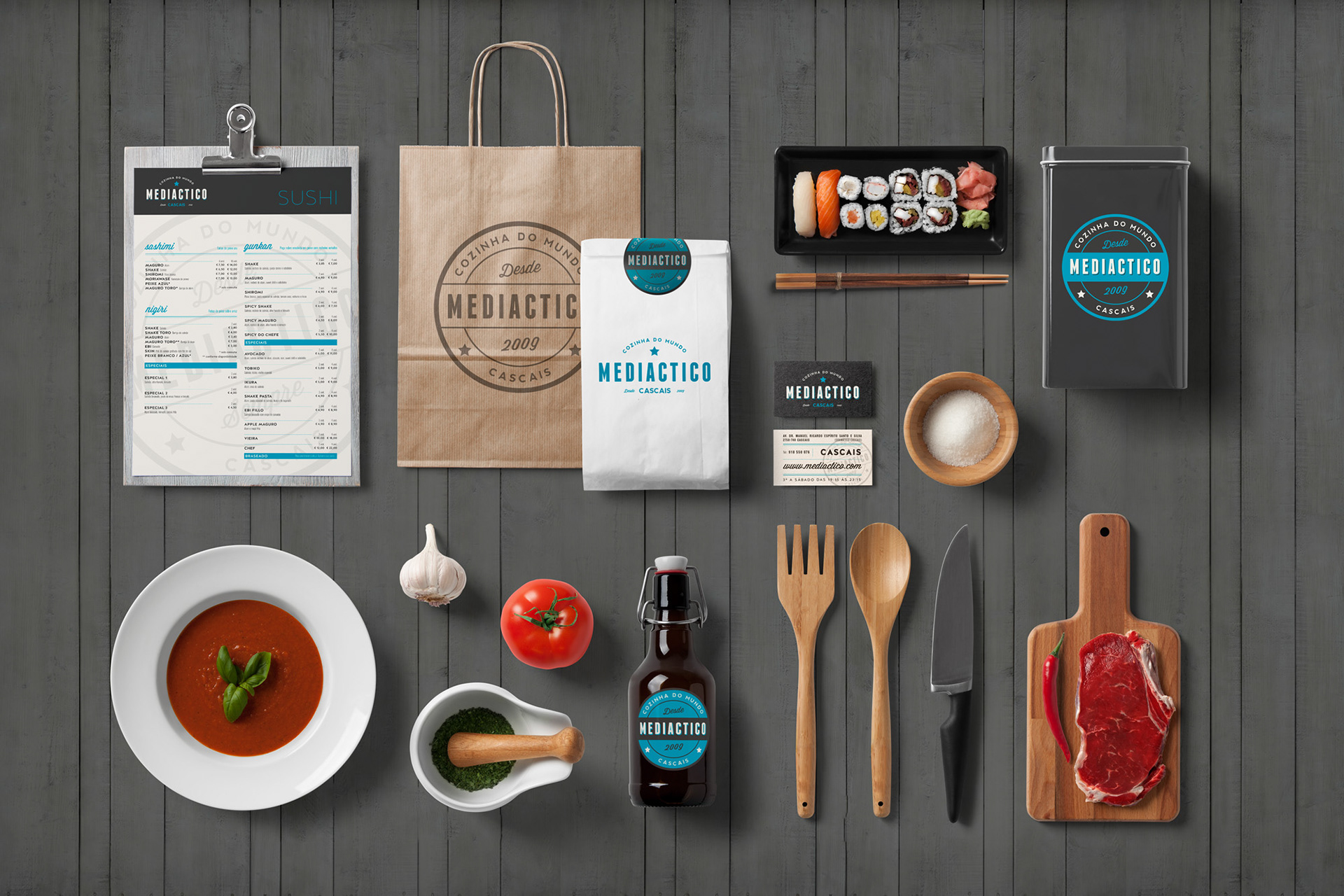 Identity for a restaurant specialized in world cuisine in Cascais, Portugal