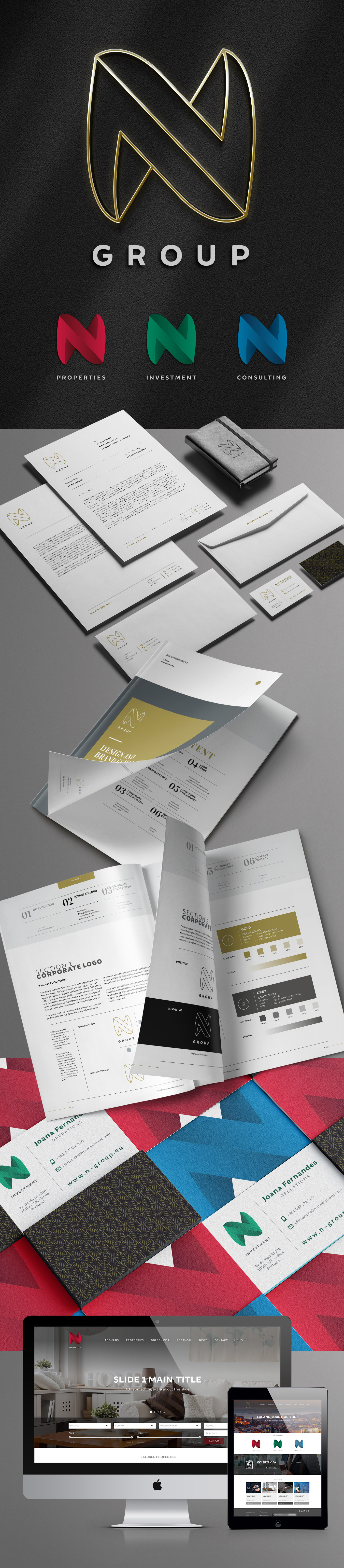 Identity, Logo and Web Design for N GROUP, a Holding Company working in three main market branches: Realestate - Investment - Consulting.